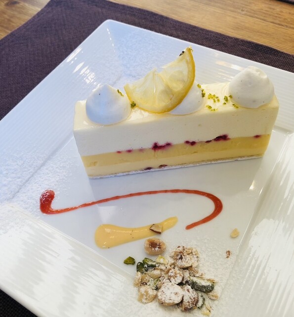 間にベリーのソースが挟まって、下層はレモンとカスタード系のぷりん生地のような…