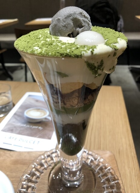グラスの真ん中あたりから感じる、濃い抹茶ソースを絡めていい感じでした。