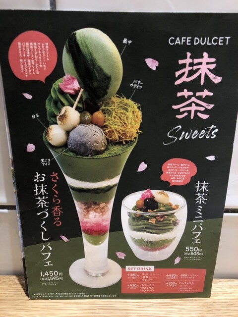 さくら香ります。いつもの席でお抹茶づくしパフェをリピート♪