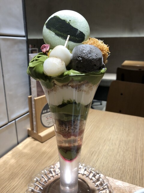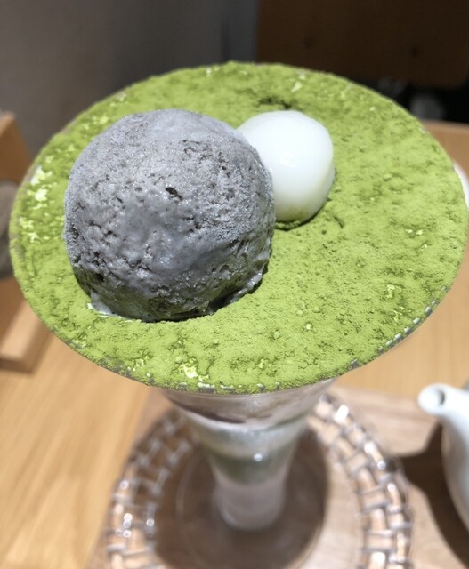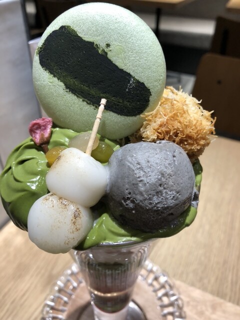 抹茶くずねり&マスカルポーネクリームがお気に入り♪グリーンティパフェ、パーフェクト!
