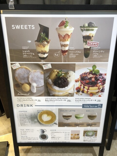 お食事系、ベッグエネディクトかな〜と思って入店したのですが、さくらの抹茶パフェを食べている方が2人もいます。