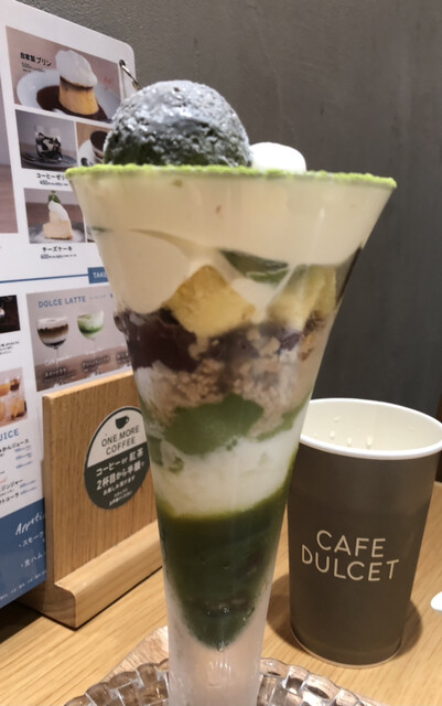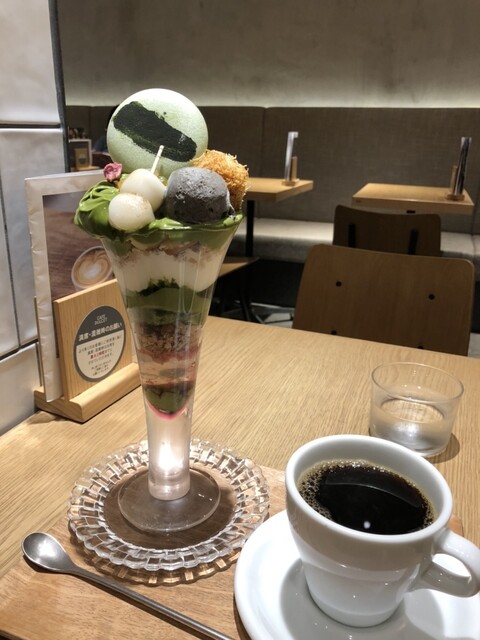 レジで結局、さくら香る抹茶づくしパフェと珈琲にしました。もうすぐ終わってしまうとのことで、リピートしておこう!