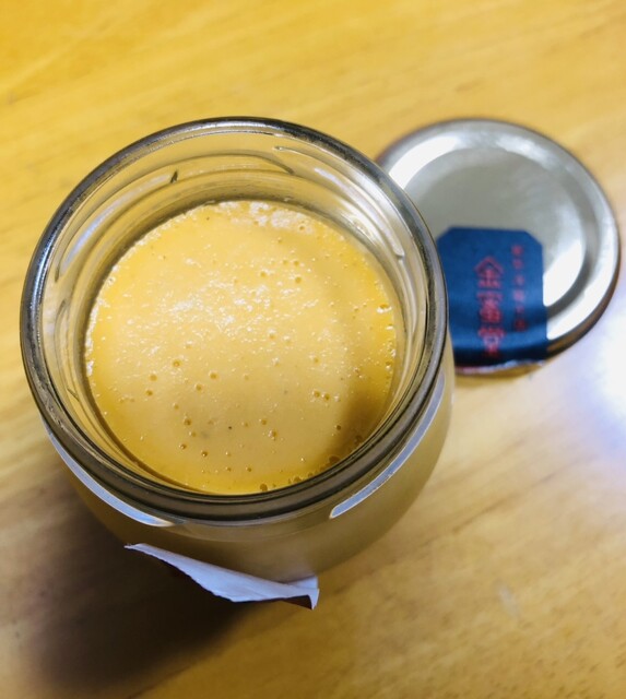 オレンジ色?小ぶりな瓶で金蜜芋ぷりん、