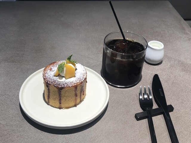 プレミアムマンゴーショートケーキとマイスターブレンドのアイスコーヒー到着。