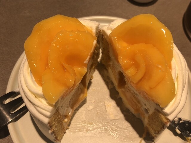 席予約時にマンゴーショートケーキもお取り置き予約しておいてよかった〜