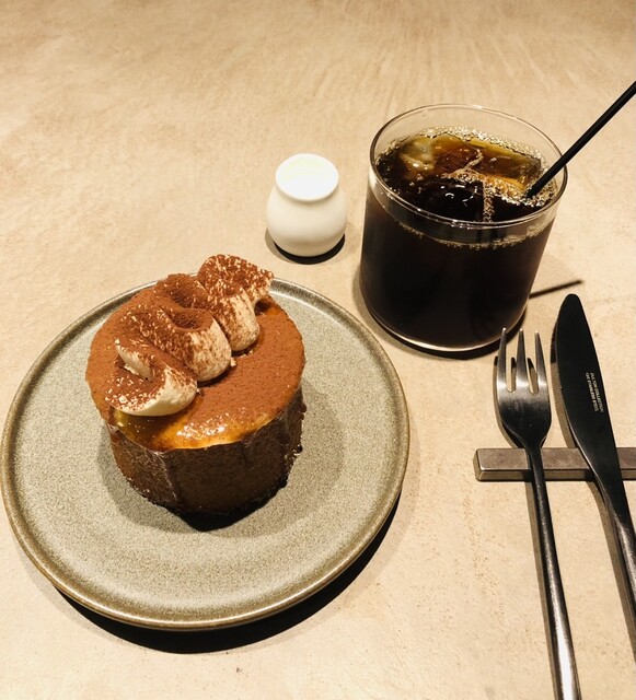 ティラミスブリュレとマイスターブレンドのアイスコーヒーをレジでオーダーです。