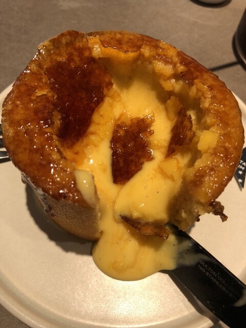 ブリュレの上のクリームを一口パクリして、