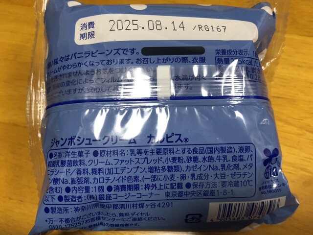 せっかくなので、まだいただいたことのないカルピス味のジャンボシュークリームも1つ。