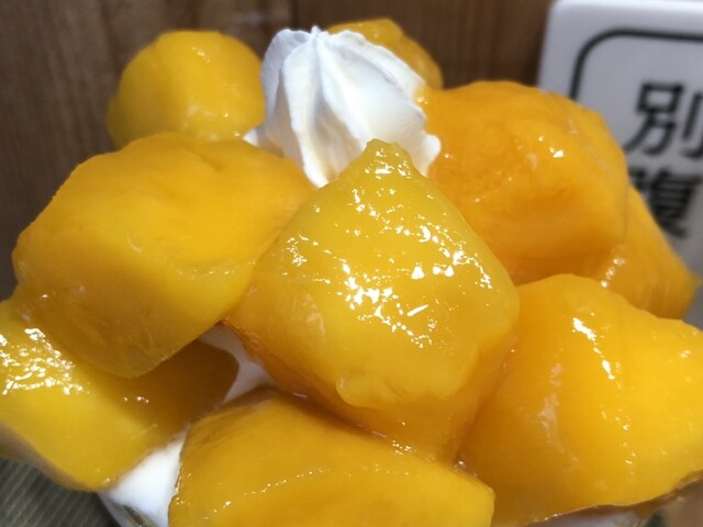 まずマンゴーの上のホイップクリームを少しいただきます。