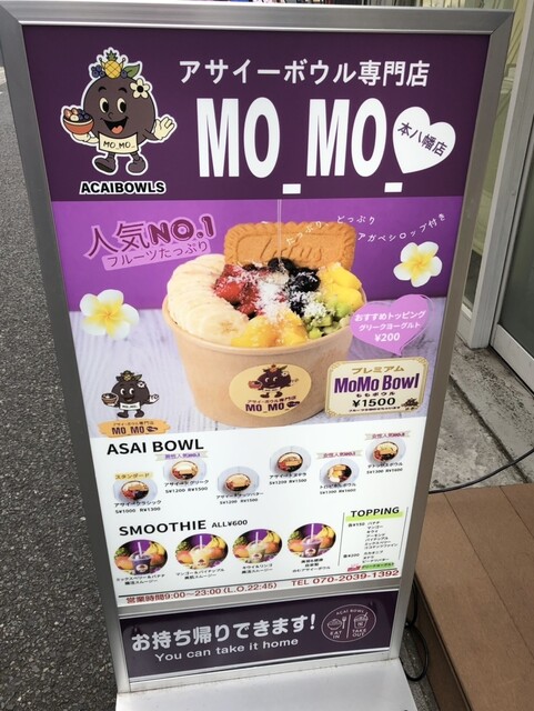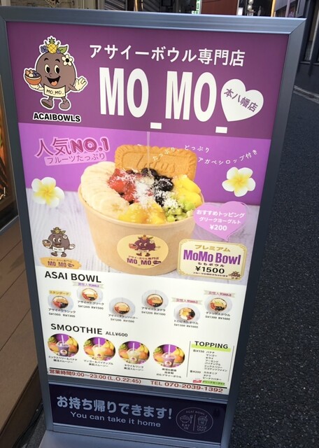 JR本八幡駅そば、アサイーボウル専門店MOMOさん。平日夜仕事帰りに伺いました。