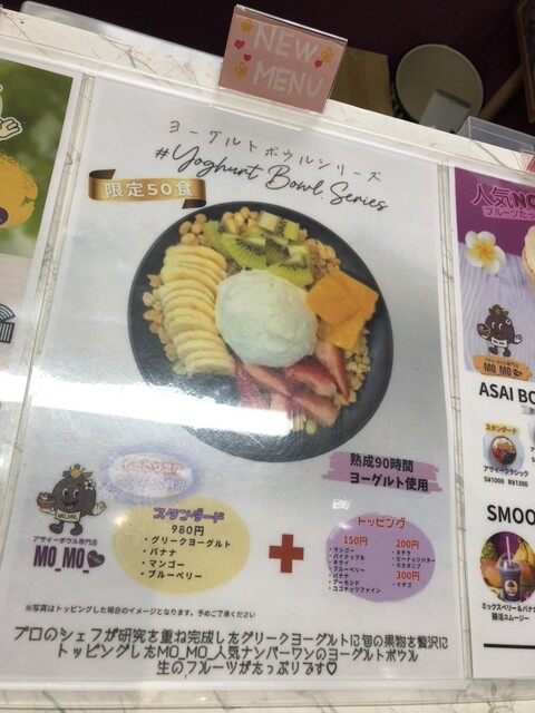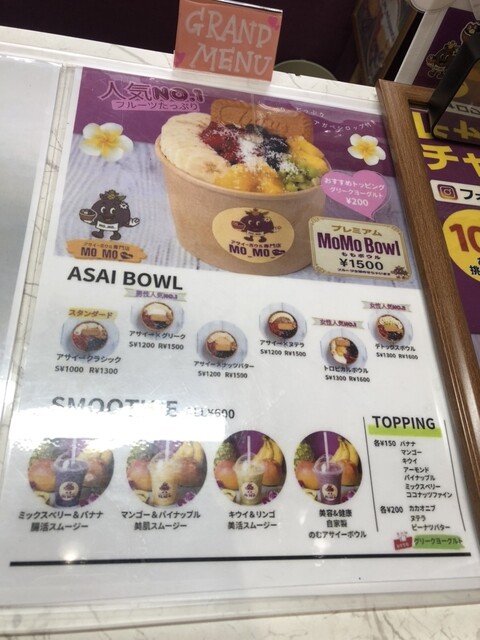 初めてですから、1番人気の?アサイーボウルのプレミアムMOMOボウルにします。