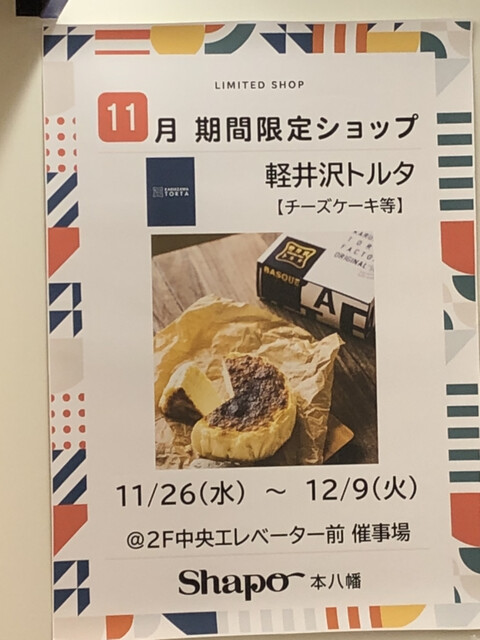 JR本八幡シャポー2階の催事で見つけた、軽井沢トルタさん。11/26〜12/9の催事、バスク風チーズケーキが人気のお店です。