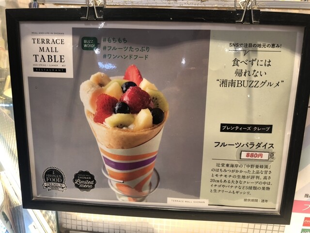辻堂駅直結、テラスモール湘南3階の広いフードコートにあるクレープやさん。