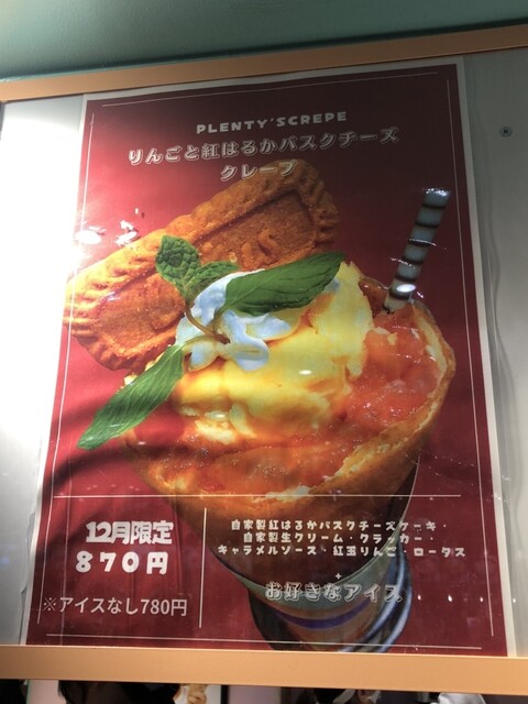 オーダーは、気になっていた12月限定のりんごと紅はるかバスクチーズケーキのクレープ♪