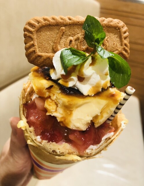薄いクレープ生地、しっかり何重かに巻かれていて、最後まで中からクリームやアイスが出てくることはありませんでした。