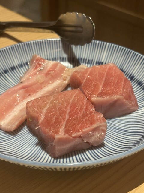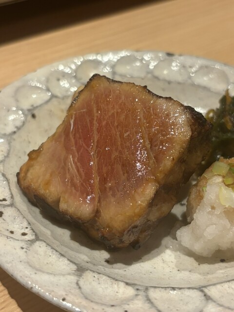 超熟成された赤酢のシャリとワサビと、天然本鮪の焼きうおがベストマッチ!