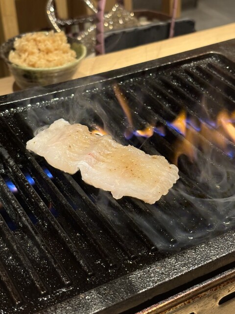 今回はコースの為、スタッフさんに丁寧にお魚を焼いて頂き、丁度いい焼き加減で食した。
