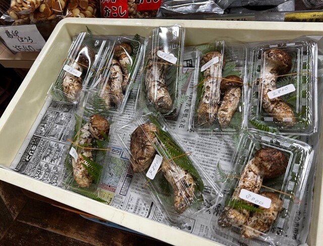 お土産品売り場に何気なく販売していた松茸は、実は今朝ここの近くの山で採れたばかりとのことで、海外産より安い位の値段なのにめちゃデカいサイズだったので買って帰りました。(翌日に自宅で炭焼きしました最強の旨さでした♫)