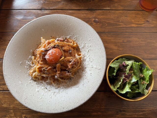 ・麺は平麺のタリアテッレ (Tagliatelle)。