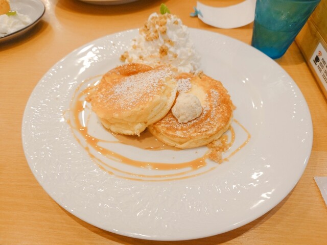 種類も色々あって迷ってしまいましたが、私はロイヤルミルクティーパンケーキを選びました。パンケーキはもちろんソースがすごく美味しいです。パンケーキはふわふわですごく美味しかったです。