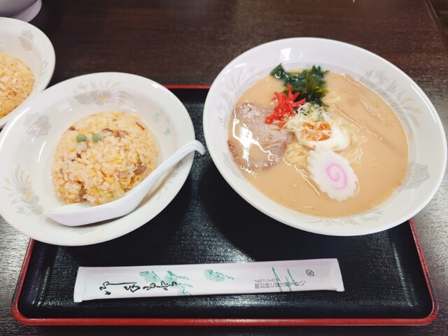 今日は がっつり食べたかったので、とんこつラーメンと半チャーハン セットにしました。