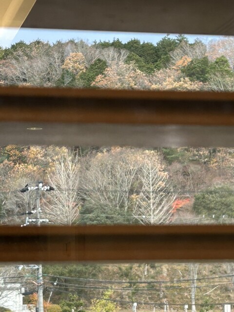 窓際の席へ。外から見える山の景色もすっかり冬になっていて、特に今日冷え込んでるなー