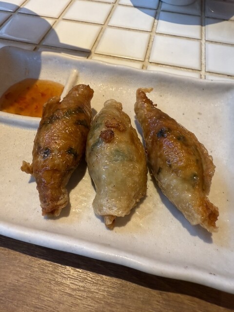 個人的には鶏皮餃子もあるのが嬉しい唐揚げはスイートチリソースを付けて食べるとより美味しかったです✨