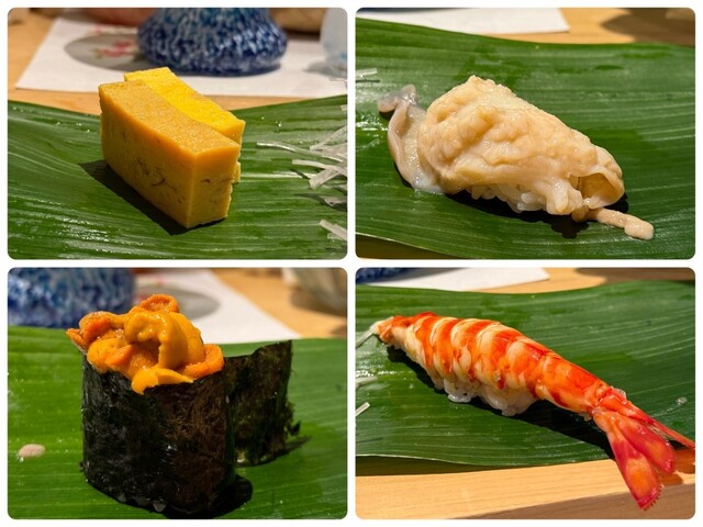 赤貝、厚焼き玉子、雲丹。