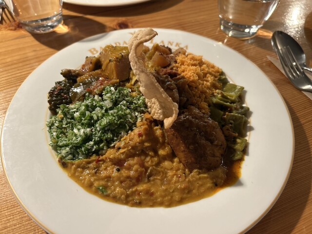 初めてのスリランカカレー、8種のルーがかかっていましたがどれも絶品。