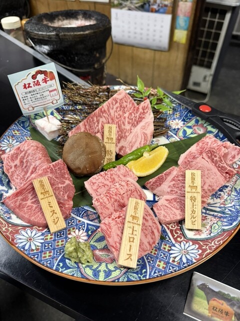 松阪牛の特選、特上カルビ、上ロース、ミスジの4種の上セットを注文。
