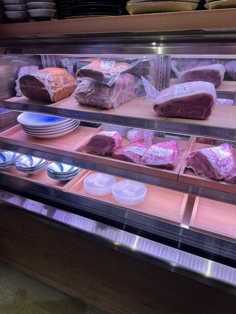 お店に着くと立派な大きいショーケースの中に塊のお肉が沢山並んでました!