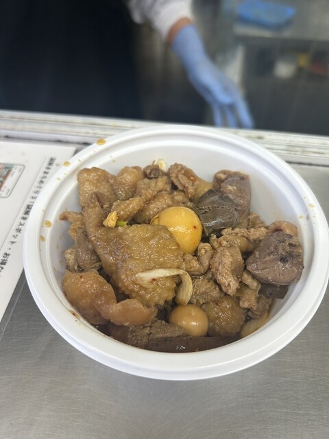 焼き鳥が15時からなの忘れてて、焼き鳥買えなかったのですが、鶏もつが出来たてだったので2パック買いました。レバーや砂肝、たまご、皮、腸が入っていて色々楽しめます。味は甘辛。ごはんがよく合います!次回は焼き鳥買いたいです!