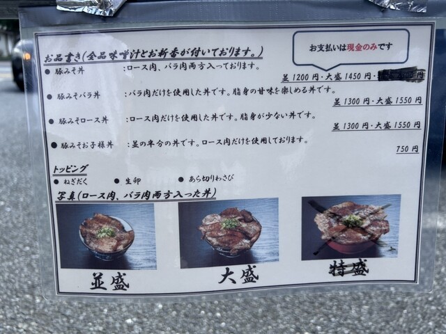 1番人気の豚みそ丼はロース肉とバラ肉ミックス丼です。バラはさっぱり、ロースはジューシーな感じがしました。とても美味しかったです。次回はロース丼をいただきたいです。お盆の終わり際に行ったため列待ち、平日12時ちょうどに外待ち列に並び、40分後に着丼。平日も混んでいるそうなので時間に余裕を持って行くことを推奨します。愛想の良い店員さんがいて雰囲気いいです。