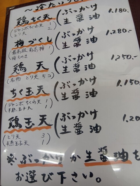 ちくてん、半熟卵天…。