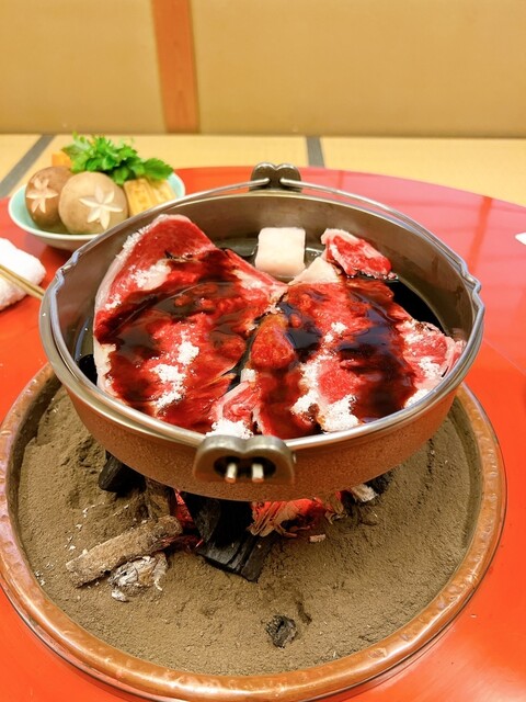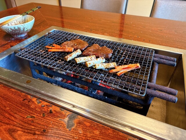 メニューはすき焼きか焼肉(あみ焼き)との事だったので、焼肉をいただきました。
