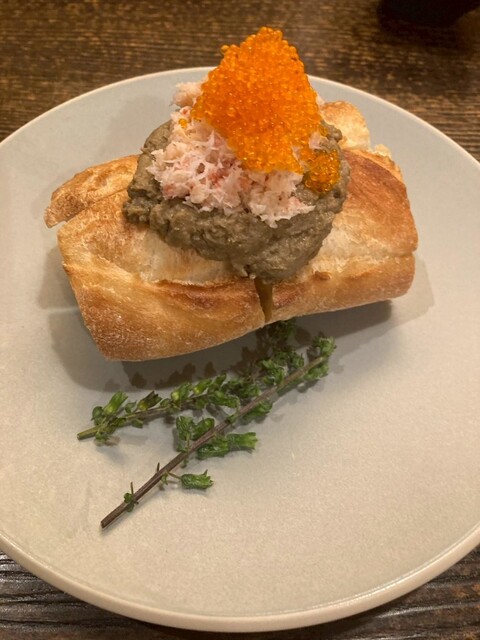 蟹味噌のごちそうブルスケッタは、蟹味噌の濃厚な風味がパンに絡み、ひと口で贅沢な味わいを楽しめます。
