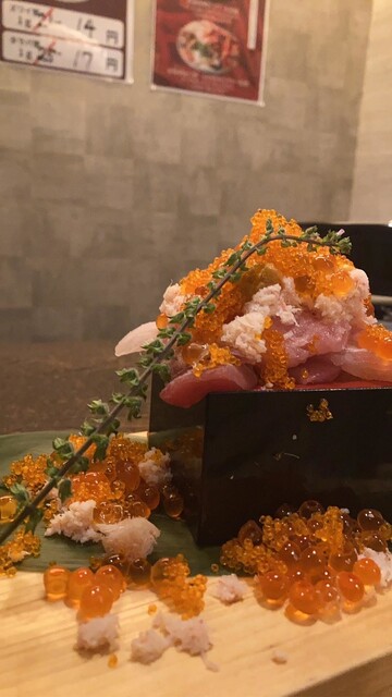 名物のかに枡こぼれ寿司は、蟹の甘みと新鮮さが存分に楽しめる豪華な一品で、見た目のインパクトも抜群です。