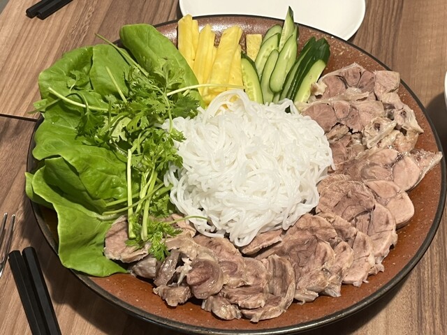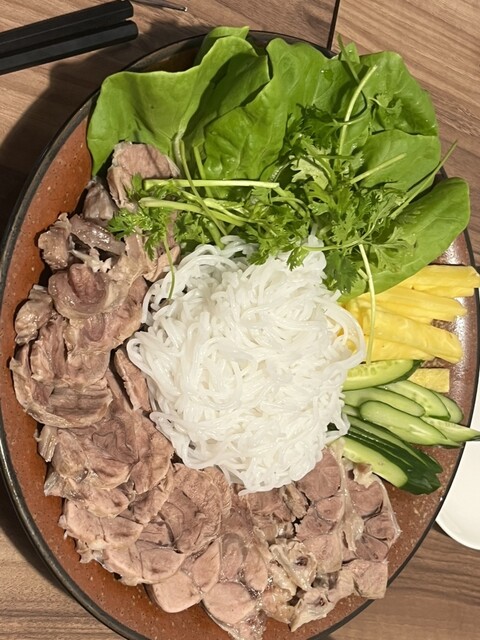まず、牛すね肉やハムなどが入ったベトナム風の盛り合わせは、ライスペーパーで包んで食べるスタイル。