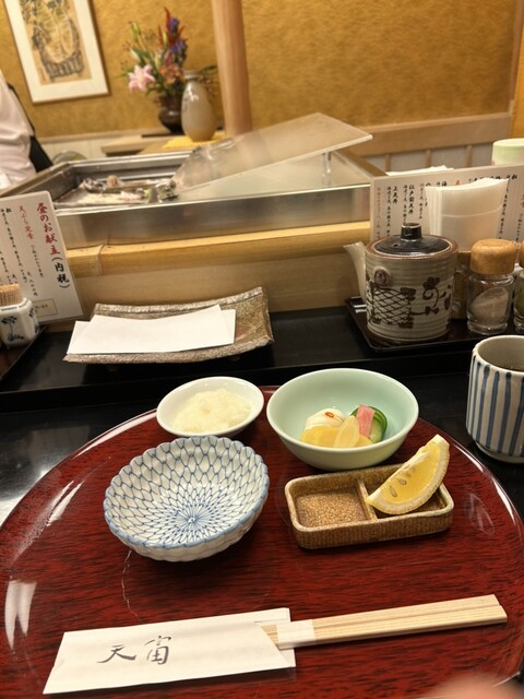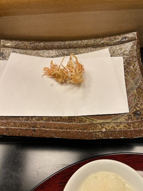 手が込んでます。椎茸には包丁が入っていて傘の裏側には海老の叩いたのではなく、ごろっと小エビが二尾。締めのかき揚げ天丼には小柱も入っていてとても美味しかった。