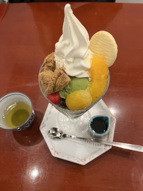 料理とデザートのセットメニューを頼みました。ハンバーグ定食と抹茶パフェです。それぞれが千円以上するので、両方を食べるつもりなら割安感はあります。ハンバーグは、もう少し薄味の方が好みですが、味付けは良いです。パフェはそれほど甘ったるくなく美味しかった。また行くと思います。