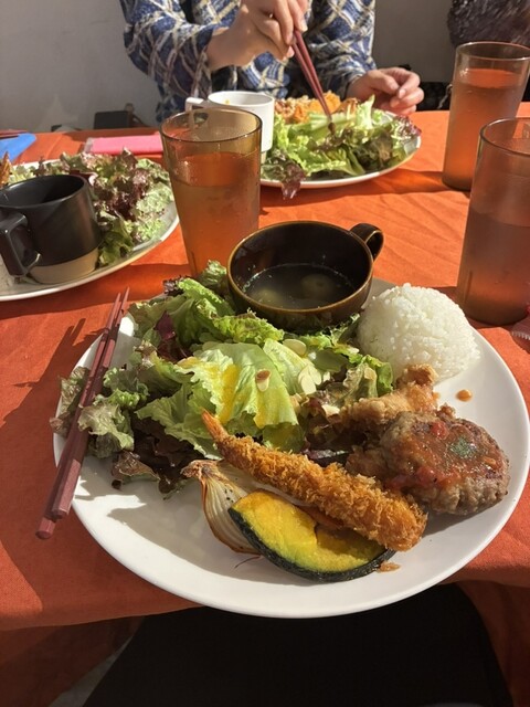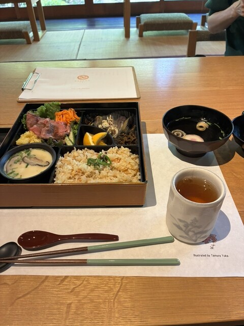 今日は1ヶ月前から予約して、ランチを食べました。私はカルビ丼定食で、友達はローストビーフ丼定食にして、ちょっとずつ分けてもらって食べました。両方美味しかったです、大根サラダと豆腐と油揚げの入った味噌汁...