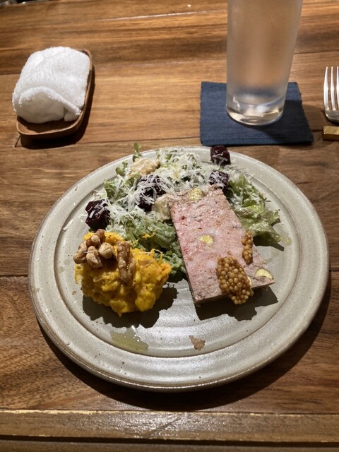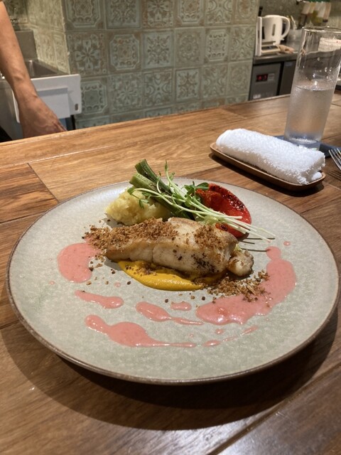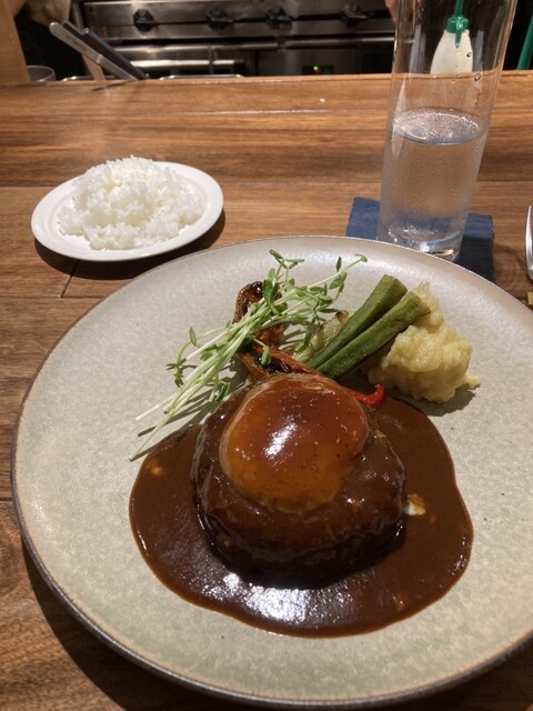 今日は友達とランチで、私はハンバーグが、食べたかったから一期一会ランチで、煮込みハンバーグと前菜と冷たい白いコーンスープで、野菜も一つ一つ味付けが、凝っていてさつまいものマッシュポテトとかシーザーサラダにとうがらしとハンバーグも赤味噌が、少し入っていてポーチドエッグ添えになっていて美味しかったです。友達は舌平目のムニエルで、少しもらったら味が、しっかりついていて美味しかったです。