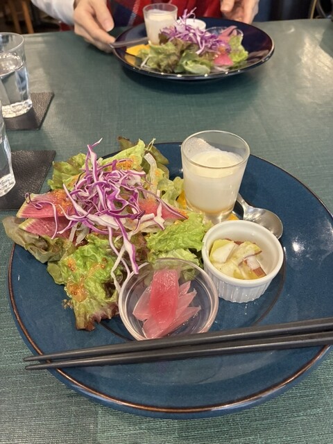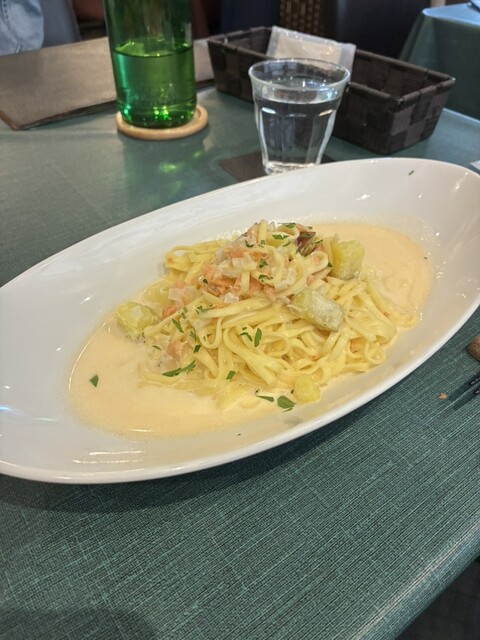 パスタランチを頼みました、前菜盛り合わせとフォッカッチャもついていて、食べごたえが、あり、パスタも5種類から選べて、お母さんと妹とで、少しずつもらって、食べてどれも美味しかったし、食後にドルチェとコーヒーも注文して、それも3種類あるケーキをちょっとずつ分けてもらって食べて、どれも美味しくて、満足です、
