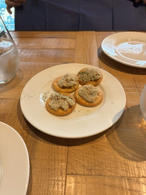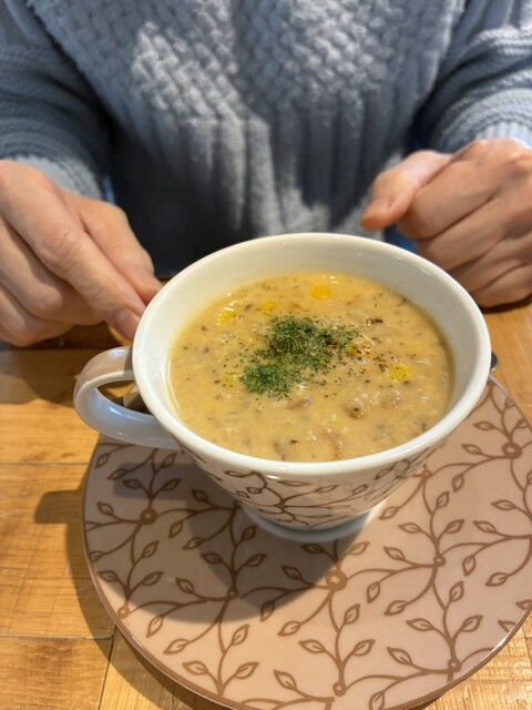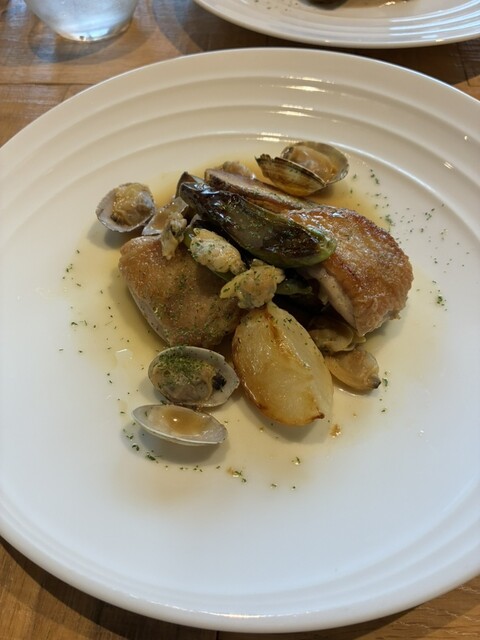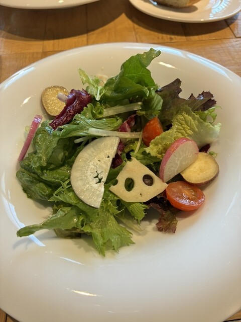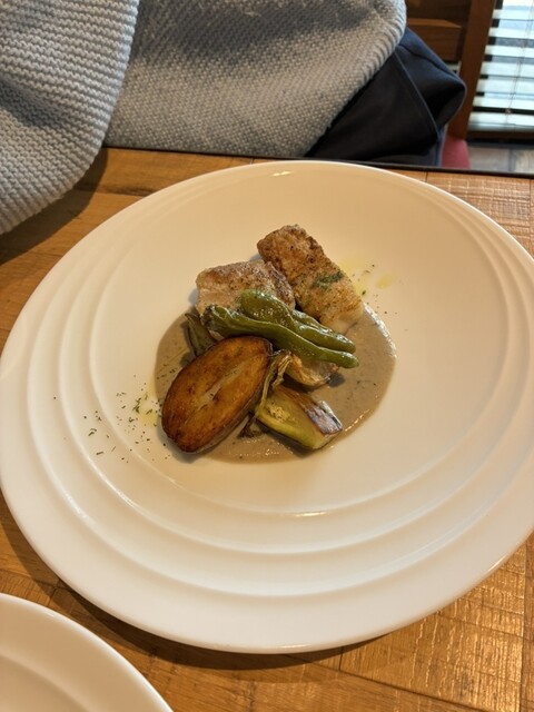 今日は友達とランチに行きました。1800円のランチにしましたが、ミニサラダでもけっこうな量のサラダでラディッシュやレンコンさつまいもなど水菜やサラダ菜のサラダが、出て最初にクラッカーの上に何かのペーストも出て、バンも手作りで、トマトと何かを練り込んであるバンで、スープはロワイヤルかポタージュだったので私はズワイがにの300円プラスのポタージュにして、友達はロワイヤルって、言う洋風茶碗蒸しにしていて、少しもらいました。私的にはロワイヤルの方が、美味しかったです。栗とか具が、あっていいなと思いました。メインは私は鶏肉を選び友達は豚肉にしていて、少しもらいました。豚肉は少し分厚いから少し固かったような気がします。私は鶏肉が柔らかくて美味しかったです。その後デザート盛り合わせが、出て柿のアイス美味しかったし、フルーツも美味しかったし、クリームブリュレのようなのも美味しかったです、追加で、ホットコーヒーも頼み美味しくて満足でした。