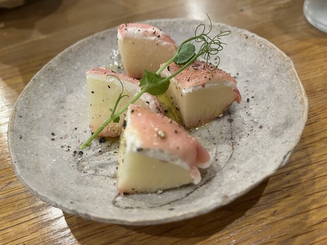 春吉の人気焼鳥店もちのきへ。いまや看板メニューのクリームチーズと生ハムは、今回シャインマスカットだった。フルーツの甘みと塩気の相性がよく最高の組み合わせ。焼鳥も一本一本丁寧に焼かれていて、どれも美味しい。店内は古民家をリノベーションした落ち着いた雰囲気で、デートにも女子会にもおすすめ。さらにドリンクはセミセルフで、冷蔵庫から好きなものを自由に取れるスタイル。呑兵衛にはたまらない気軽さで、ついつい飲みすぎてしまう。ご夫婦の柔らかな雰囲気も長居してしまう理由の一つ、〆にからすみパスタとデザートまでしっかりいただいた。ごちそうさまでした!