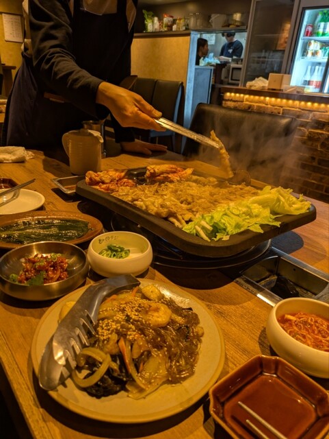 バレンタインなのでご馳走しました。店員さんも明るく、気配りがあり、気持ちの良い対応をして頂きました。匠コースでお腹いっぱい。お肉はもちろん、生キムチ、ハマりました。海外からのお客様も多く、色々な言語が...