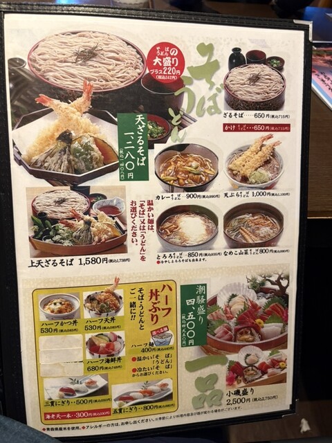 カツ丼やハンバーグなどのセットメニューもいろいろありました。蕎麦を中心にメニュー構成されているようです。