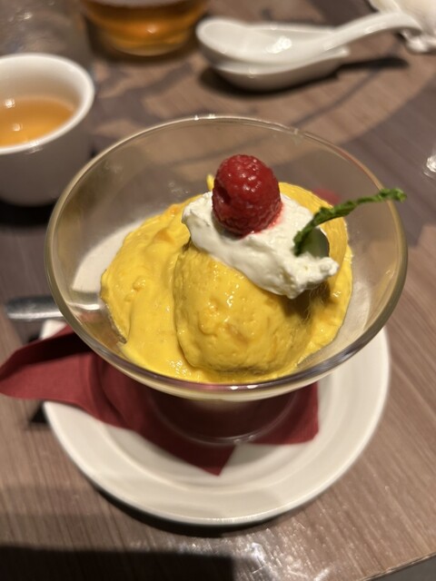 私の元の職場の当時のメンバーが、本社の調査役、支店の次長、支店の係長に昇進したお祝い会。10名参加で、お気に入りの奥の半個室を相当前に予約しての来店です。張り切り過ぎの最年長の私は、予約時刻の30分前から来て待機していましたが(笑)、定刻18時に全員が揃って二つの円卓を囲んで乾杯!9人は『キリンハートランドジョッキ』、あとの1人は『シーロンフルーツバナナカクテル』で乾杯しました。あとの1人、スタートからぶりぶりバナナです(笑)。本日は紅三点が参加、うち紅二点のグルメマダムがいつものように容赦なくオーダーを開始(笑)!定番の名物『バナナ餃子』と『春巻き』から…。『バナナ餃子』、餡もたっぷり入っていて相変わらずの美味しさ。野菜もたっぷり、ジューシーで旨っ!旨っ!です。あとは、飲んで、食べて、話しての大宴会!こちらのお店、この会の飲み会では聖地となりつつあります。男性陣は主に『生ビール』と『ハイボール』。女性陣は充実しているカクテルをおかわりの鬼連チャン(笑)!コスト高ァ〜!料理のオーダーは、『今月のディナータイムおすすめ』から、『麻辣ポテト』、『レタスとキクラゲの湯引きオイスターソース』、『豚バラ肉の梅肉蒸し』といずれも2皿、3皿とオーダー。10人もいるので、あっという間になくなります。グルメマダムが取り分けてくれるので助かりますが…。一般メニューの『油淋鶏』も2皿追加!なにを食べてもクオリティが高く、本当に美味しいです。メンバーがいいから…?それもありますが、こちらのお店、東京の一流ホテルで腕を磨いたシェフが作る本格中国料理です。美味しいのは当然ですね。ここで、私たちの飲み会史上初めての『追いバナナ餃子』2皿追加オーダー!久しぶり参加の調査役のリクエストでした。宴もたけなわ、当店名物『麻婆焼きそば』2皿オーダー、件のグルメマダムが、混ぜ混ぜかまかましてくれましたが、追加の『麻婆』の必要性を主張、『麻婆豆腐』2皿を追加。『追い麻婆』で、実に実に贅沢なスペシャルメニュー『麻婆×2焼きそば』が完成!麺は程よい硬さでまとっている麻婆の辛さもいい感じで、美味しいことこの上なし!満足!大満足!です。これでも足りずに最後はデザートのオーダー。『杏仁豆腐』、『マンゴープリン』、『タピオカココナッツミルク』、『黒胡麻アイス』とめいめいにオーダー、ちなみに私は『マンゴープリン』でした。デリシャス!1人『デザート三点盛り』をオーダーしたのは、本社の課長…。『会費3倍』のコールにも動じることなく、冷静に受け流していました(笑)。美味しいものを飲んで食べると、会の盛り上がりも2倍、3倍増し!増し!次回は誰のお祝い会になるのか?あっという間の3時間、ご馳走様でした。