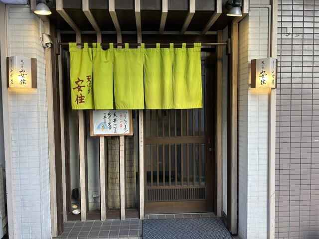 今日はとても親しい友人が事務所に来ることになっており、一緒に昼食を取ることになっています。朝から小雪が絶え間なく降っていたので、私のところの事務所から徒歩13分の『安住』さんにするかどうかとちょっと迷いましたが、昨年12月24日に初めて訪問した『安住』さんに決めました。前回訪問時の帰りがけに女将さんから、『また、予約して来てください!』との感じの良いお言葉をいただいたことを思い出しての再訪問です。『知る人ぞ知る天ぷらの名店!』。10時過ぎに電話で予約を入れたところ、気っぷの良い大将に電話を取って貰いました。当店では、ランチの予約は当日限り受けているようです。開店時刻11時30分の5分前に、満を持して店先に到着、今日も一番乗り(たった2回目ではありますが…)かと思ったら、先客のご婦人がいらっしゃいました。従って、開店時刻に2番乗りで入店、すぐ後にも予約なしのご夫婦が続きました。友人には、前回私がいただいた『今日の天ぷら定食(税込1500円)』をすすめて、私は、『今日の天丼(税込1100円)』をお願いしました。店内はさほど広くはなく、7席あるカウンター席も開店と同時に5席が埋まり、残り2席も予約席となっていました。その後のお一人さんは、小上がりの席に案内されていました。前回も感じたことですが、店内は清潔感があり、大将と女将さんのホスピタリティ溢れる接客もとっても感じが良かったです!毎度!毎度!先客さんも『今日の天ぷら定食』だったようで、私の友人とほぼ同じに天ぷらが進行(笑)。ちょっとだけ間を置いて、私の『今日の天丼』がお盆渡しで着丼。大将が、どんぶりにご飯の上の天ぷらにタレをかける姿なんて、『ザ・職人』の出立ちで、食べる前から、美味しいこと間違いなしと思いました。