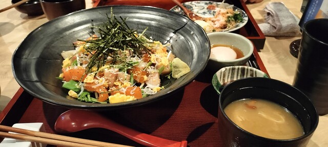 近所のある長濱さんはいつも混んでいるので早めに来店。もうすでに来店客がいて私たちのあとからぞくぞく来店。二度目の来店でランチを注文。切り落とし海鮮丼を注文。いろいろな魚の切り身が大きくて食べごたえあり、ご飯も白米と雑穀選べて雑穀米にしました。ご飯の量は多めでした。小鉢の3種は写真にとることができませんでしたがすべて美味しく頂きました。味噌汁の具材は玉ねぎとなめこで物凄く美味しかったです。全体的に満足なランチになりました。ありがとうございました。
